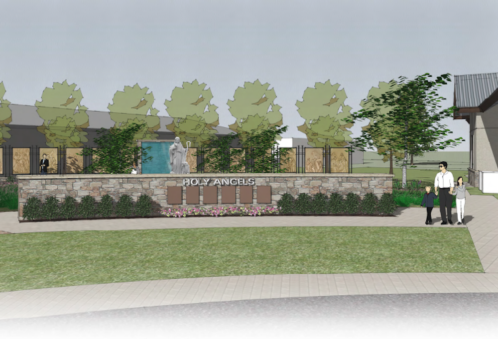 The completed garden will include beautiful panels depicting the history of Holy Angels.